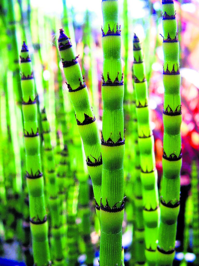 Although often viewed as a weed, horsetail does have an unusual beauty and is of interest as a ‘living fossil’, belonging to a group of plants that predate dinosaurs. Since ancient times people have used horsetail in herbal remedies to treat a range of ailments. It is also used to make an organic liquid fertiliser, with some claims that it has antifungal properties.